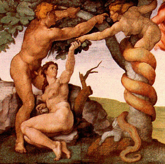 Michelangelo Buonarroti - Lilit y la Serpiente tentando a Eva (Capilla Sixtina).